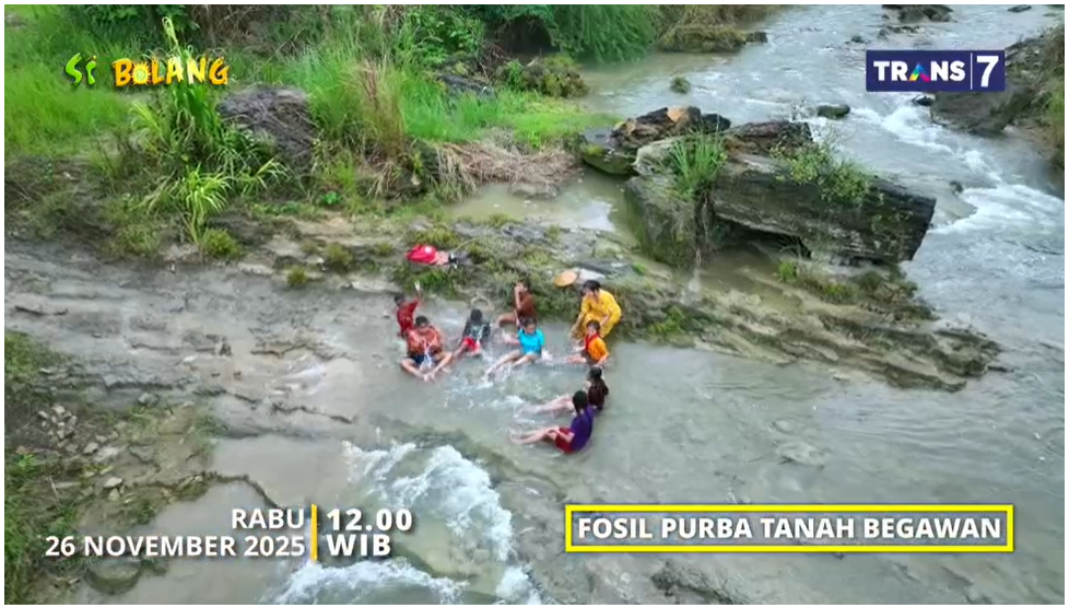 SI BOLANG dengan tema Fosil Purba Tanah Begawan di Trans 7 Hari ini Rabu 26 November 2025 Pukul 12.00. Video Preview dapat dilihat di https://www.youtube.com/watch?v=EL7fq2MHZUM