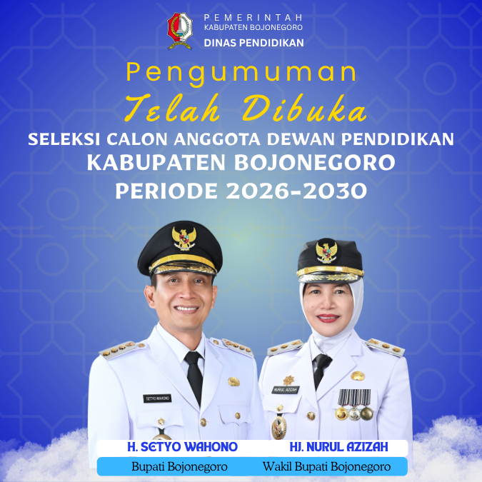 Dalam rangka melaksanakan ketentuan Peraturan Pemerintah Nomor 17 Tahun 2010 tentang Pengelolaan dan Penyelenggaraan Pendidikan sebagaimana telah diubah dengan Peraturan Pemerintah Nomor 66 Tahun 2010 tentang Perubahan atas Peraturan Pemerintah Nomor 17 Tahun 2010 tentang Pengelolaan dan Penyelenggaraan Pendidikan dan Peraturan Daerah Kabupaten Bojonegoro Nomor 8 Tahun 2020 tentang Penyelenggaraan Pendidikan di Kabupaten Bojonegoro dan Keputusan Bupati Bojonegoro Nomor 188/42/KEP/412.013/2026 tentang Panitia Pemilihan Anggota Dewan Pendidikan Kabupaten Bojonegoro Periode Tahun 2026-2030, akan dilaksanakan Pemilihan Anggota Dewan Pendidikan Kabupaten Bojonegoro Periode Tahun 2026 – 2030 dengan ketentuan sebagai berikut: